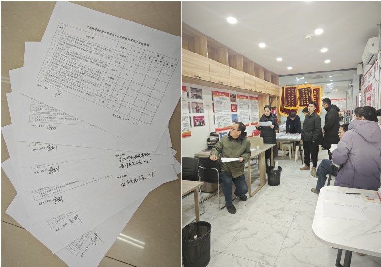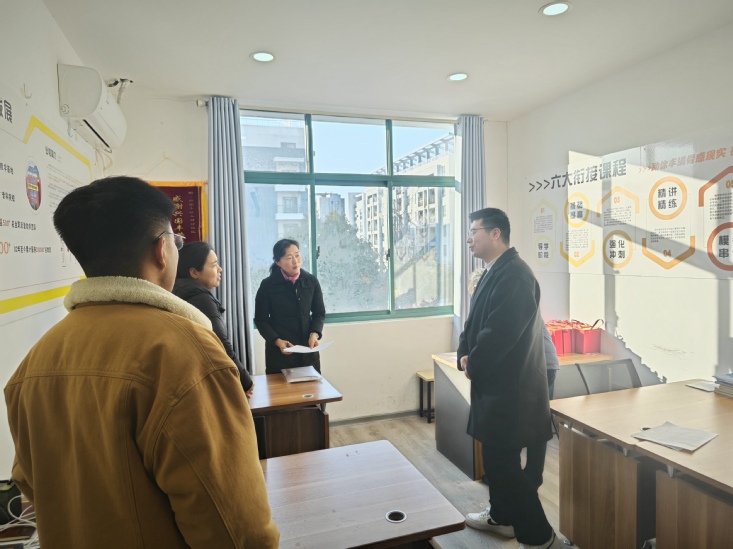 会后,继续教育学院联合学校学校多部门开展对专转本机构的抽查工作。由继续教育学院副院长徐白梅、质量管理办公室副处长宋锦刚、保卫处副处长马鸣以及黄新伟老师、继教院全体教职工组成的考核小组,重点从以下几方面进行检查:安全管理制度的完善性,包括消防安全、卫生安全等,全方位保障学生人身安全;办公场所培训管理与教学管理制度的公示情况,对学生的管理和服务质量,以及对学生需求的响应速度与服务态度;教学台账的完整性,涵盖师资表、学生档案、课程表、考勤表、教学进度计划及教师备课笔记等,以此评估教师教学能力与教学效果;考核小组根据各机构实际情况现场评分。