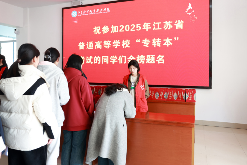 “没想到学校给我们准备了这么多祝福,‘金榜题名’袋、‘高中’糕、‘爱心’早餐券,老师们的鼓励和祝福让我信心倍增!”智能工程技术学院考生匡懿说。3月22日,江苏省2025年专转本考试正式开始,为助力我校2100余名考生圆本科梦,学校高度重视,校领导亲自部署,继续教育学院联合宣传部、后勤服务中心、图书馆、学生社区教育管理服务中心等多个部门,开展了“暖心助力专转本”系列活动,以微信公众号推文、送“金榜题名”福袋等线上线下结合的方式为考生加油鼓劲、送上祝福。