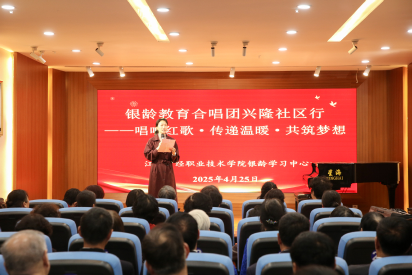 2025年4月25日下午,江苏财经职业技术学院银龄中心合唱团走进兴隆社区,举办了一场意义深远的文艺演出。此次活动围绕“唱响红歌、传递温暖、共筑梦想”的主旨,借助丰富多彩的节目形式,为社区长者们奉献了一场视听双重享受的盛宴,传递出鼓舞人心的正能量。