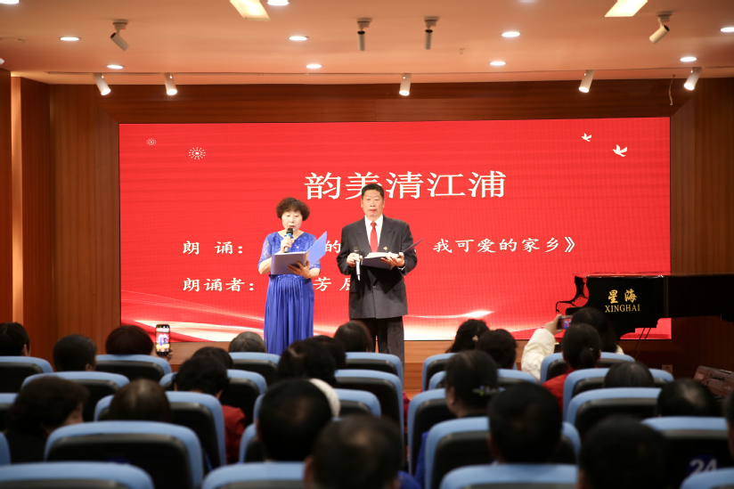 在“韵美清江浦”环节,杨德芳和屈爱娣朗诵的《美丽的清江浦,我可爱的家乡》,用抑扬顿挫的语调,细腻地勾勒出清江浦的旖旎风光与深厚的历史底蕴。他们的朗诵饱含对家乡的热爱之情,让现场观众产生了强烈的共鸣,也让这片土地在观众心中留下了更深的印记,激发了他们更浓厚的热爱之情。