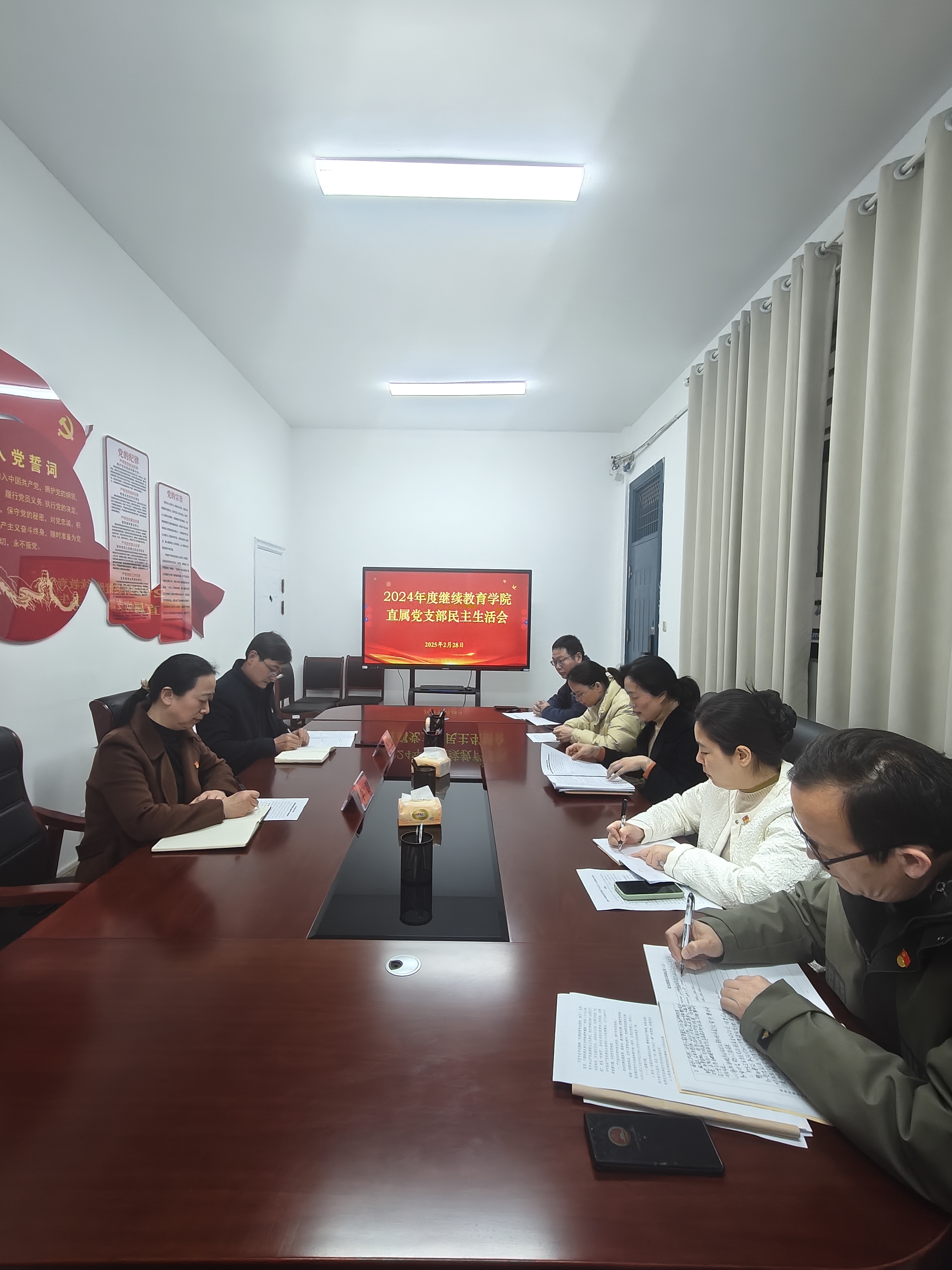 为深入学习贯彻习近平新时代中国特色社会主义思想,巩固深化党纪学习教育成果,综合发挥党的纪律教育约束、保障激励作用,2025年2月28日下午,继续教育学院直属党支部根据学校《2024年度民主生活会实施方案》的相关部署与要求,在躬行楼会议室召开2024年度民主生活会。学校党委委员、科技处处长桑雷同志、审计处处长李群同志莅临现场指导。继续教育学院全体党员参加会议,会议由继续教育学院直属党支部副书记徐白梅主持。